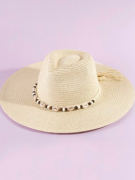 A stylish straw cowboy hat designed with a beautifully woven texture and finished with a beaded cowrie shell band for a natural, beach-inspired touch. Lightweight and easy to wear, this hat adds effortless charm to warm-weather outfits while bringing a unique statement to everyday looks, vacations, or outdoor events.