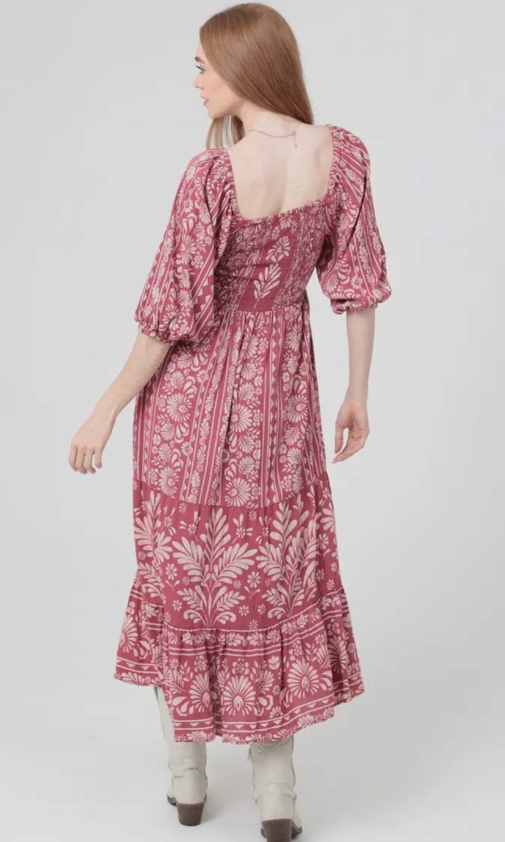 Jasmine Half Sleeve Smocked Bodice Midi Dress with Pocket
