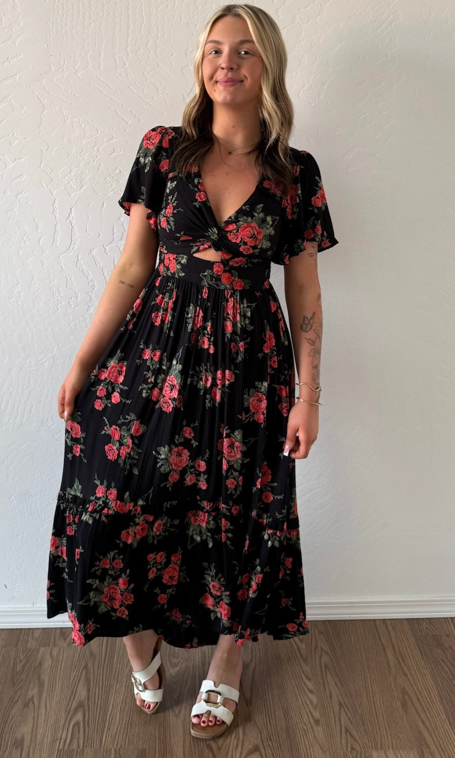 Orida V Neck Twist Front Cut Out Hi Lo Side Slit Dress