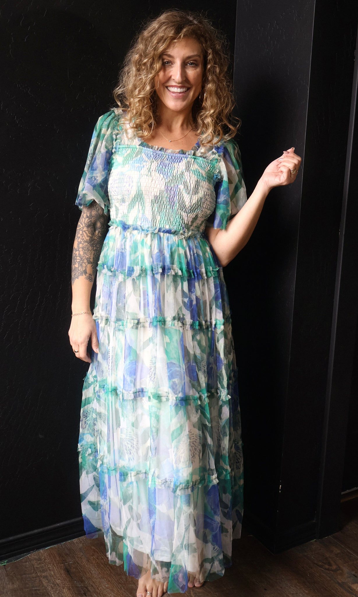 Orsola Smocked Top Mesh Ruffeld Midi Dress