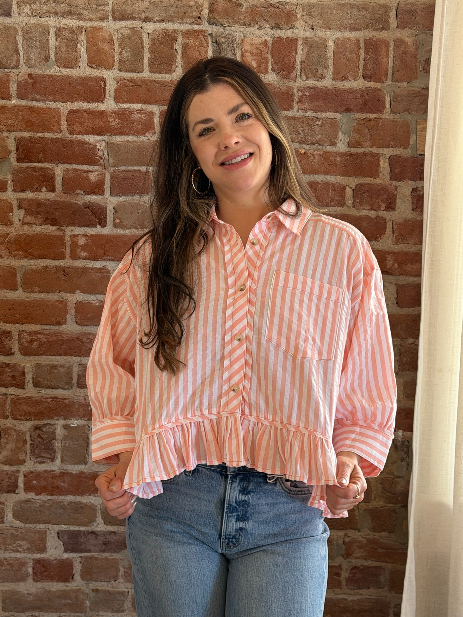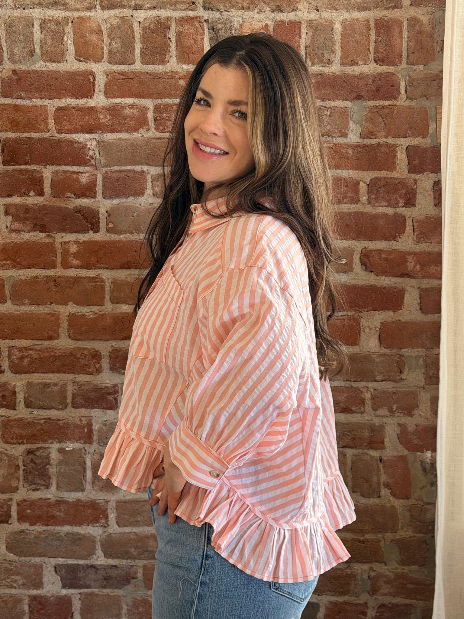 Karla Peach Stripe with Bottom Frill Shirt