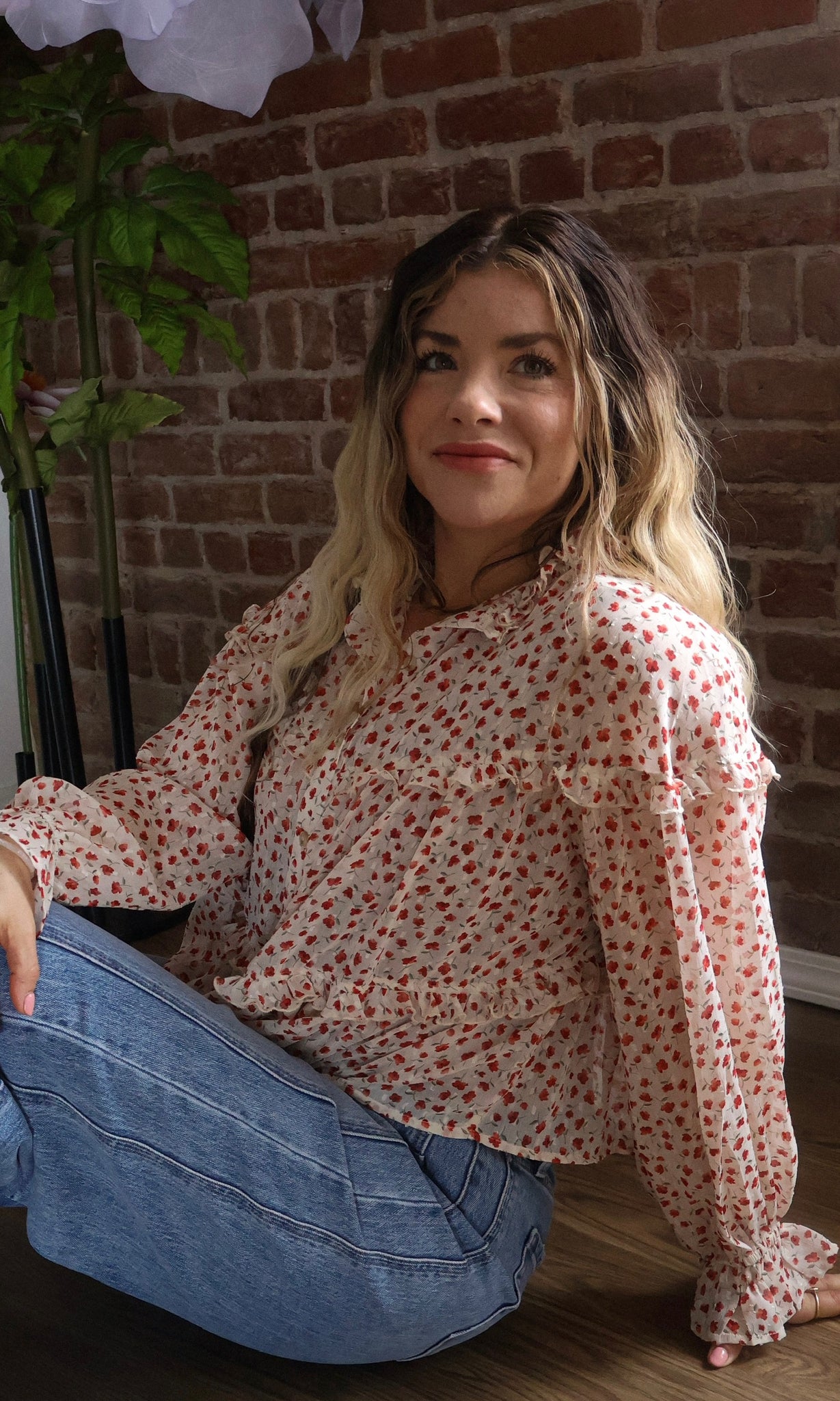 Kaya Clipdot Chiffon Floral Print Ruffled Blouse