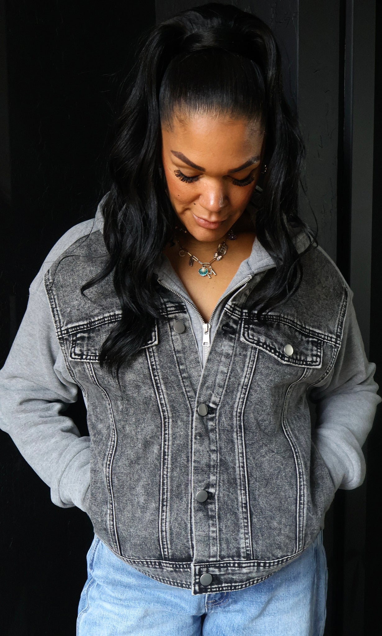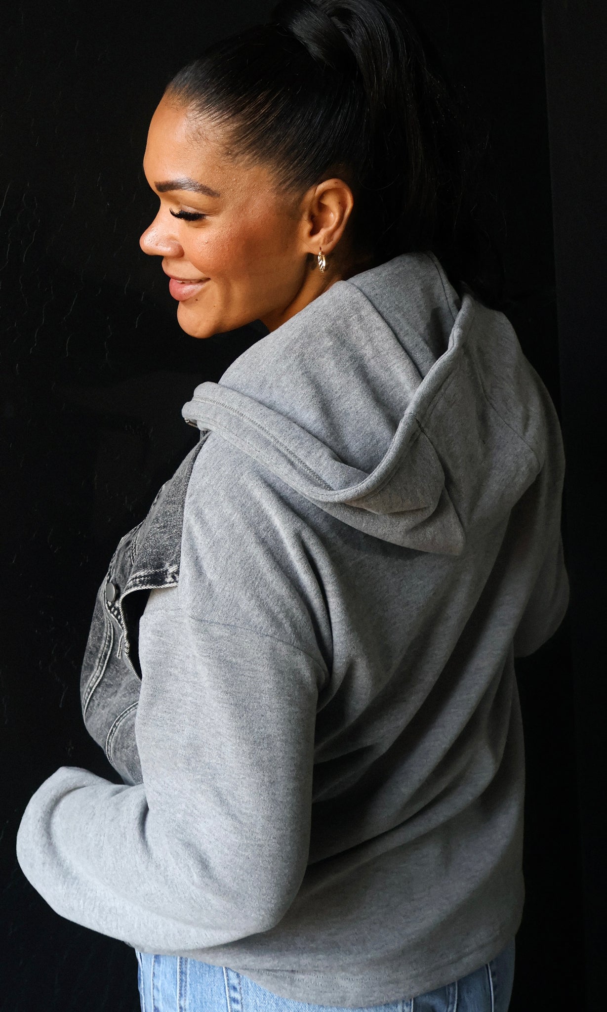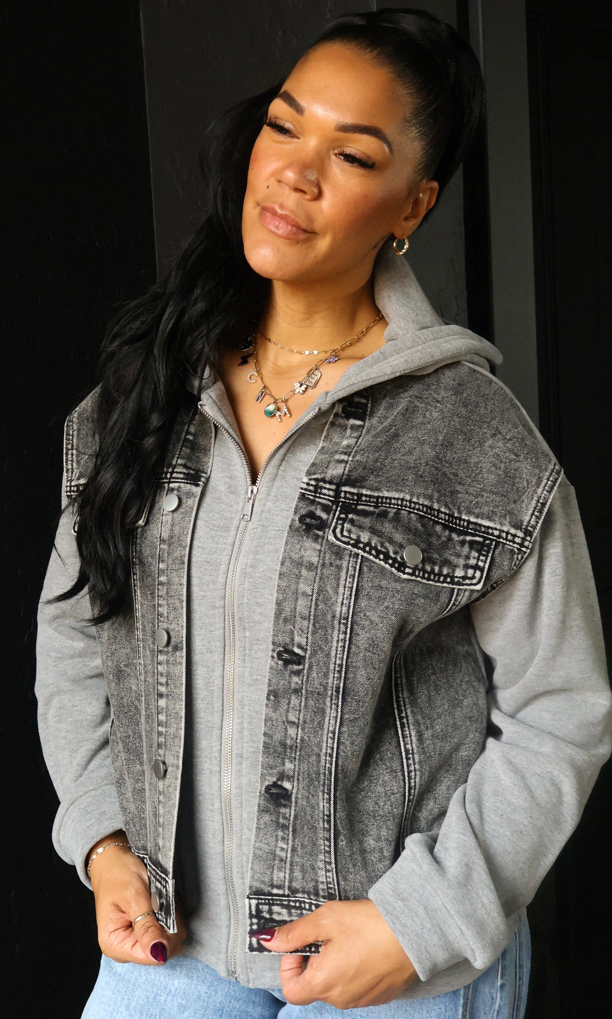Denim Contrast Twofer Hoodie Jacket