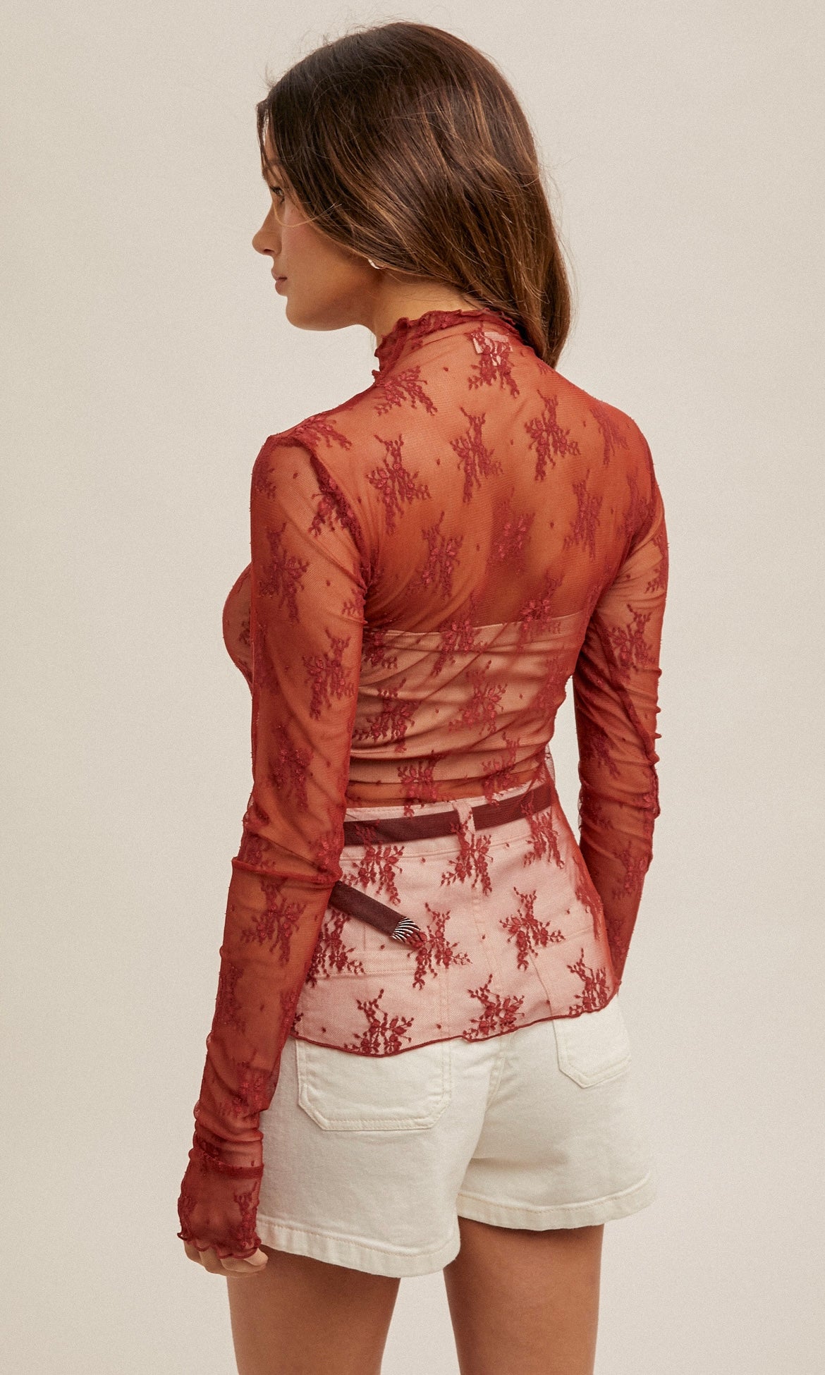 Megan Brick Mock Neck Lace Long Sleeve