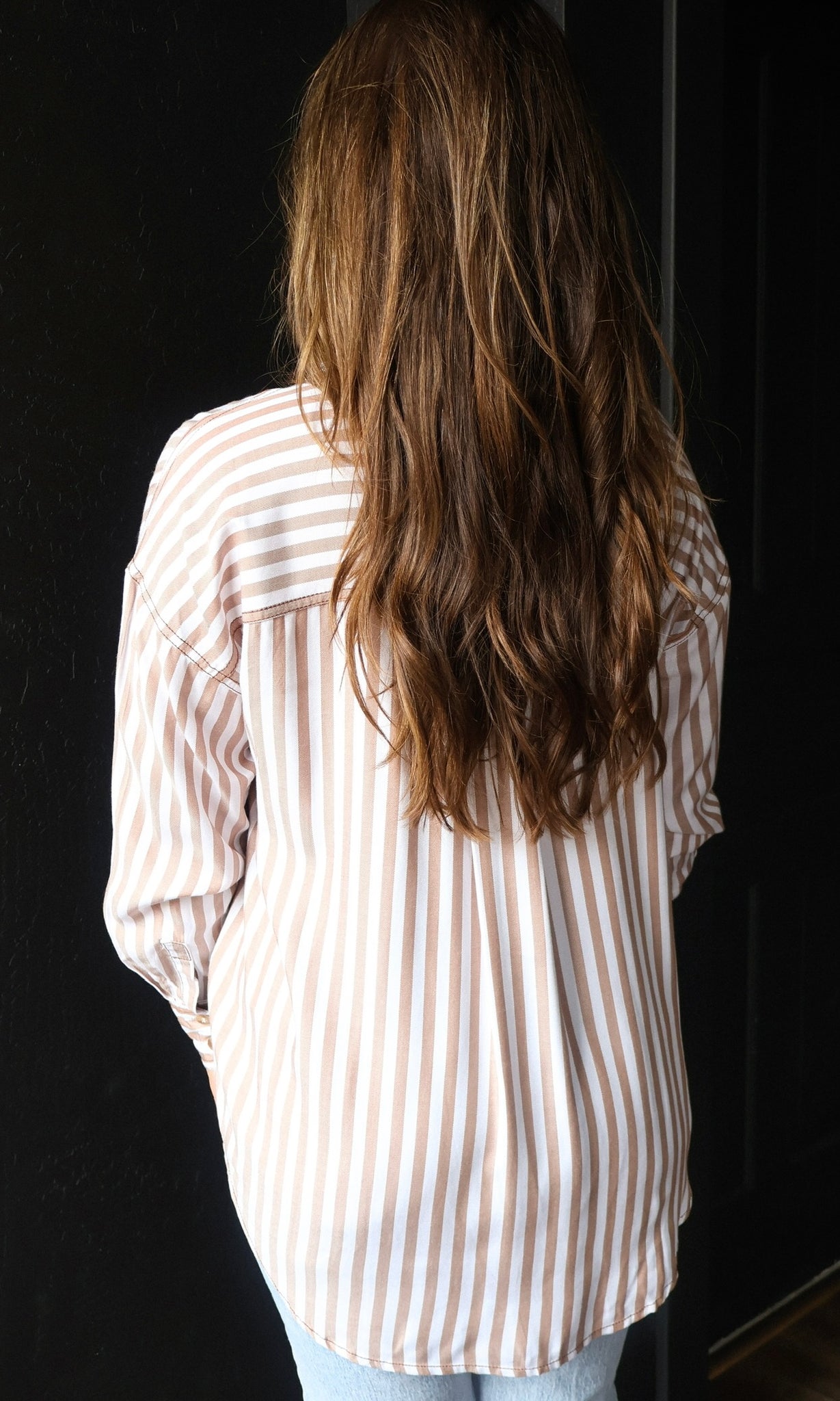 Nora Brown Stripe Collared Button Down Long Sleeve Shirt