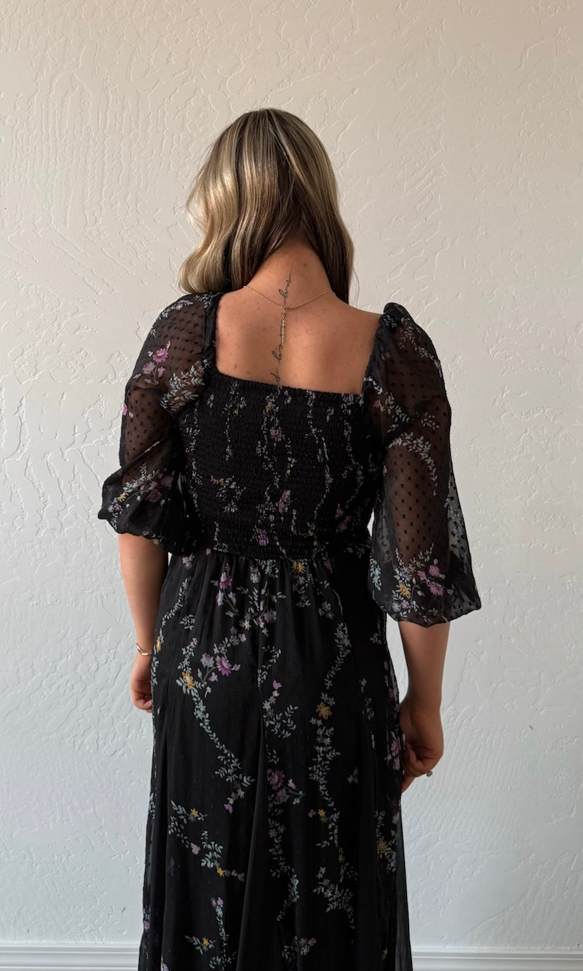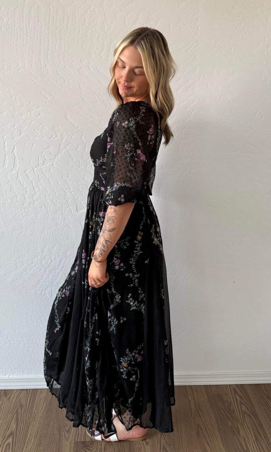Oleen V Neck Twist Front Sheer Godet Maxi Dress