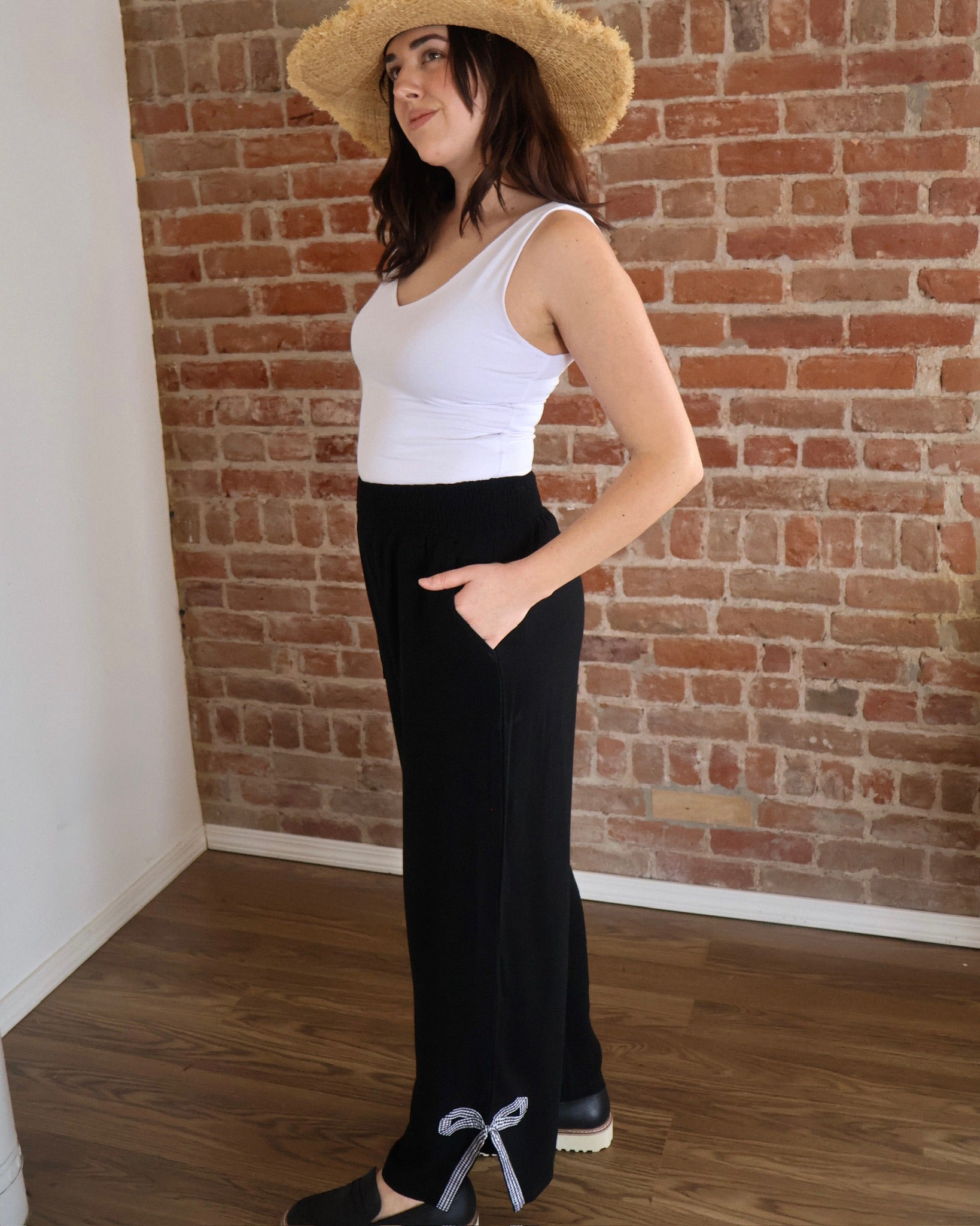 Gingham bow hem detail