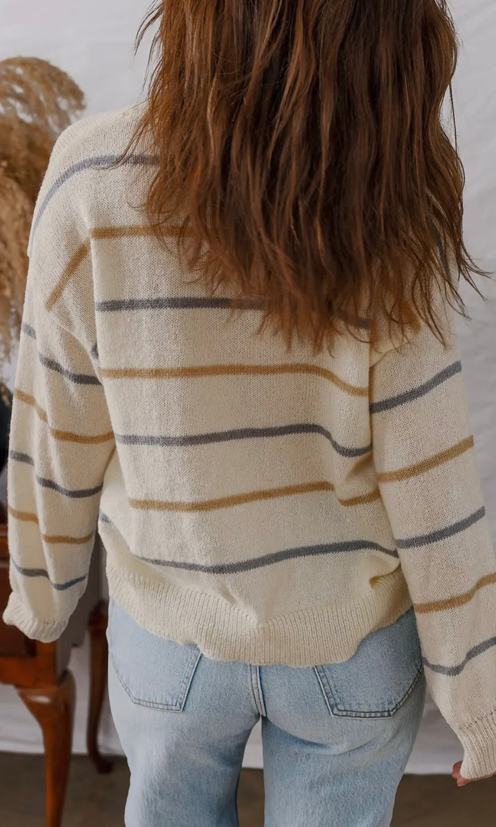 Cutest stripe ribbed trim sweater