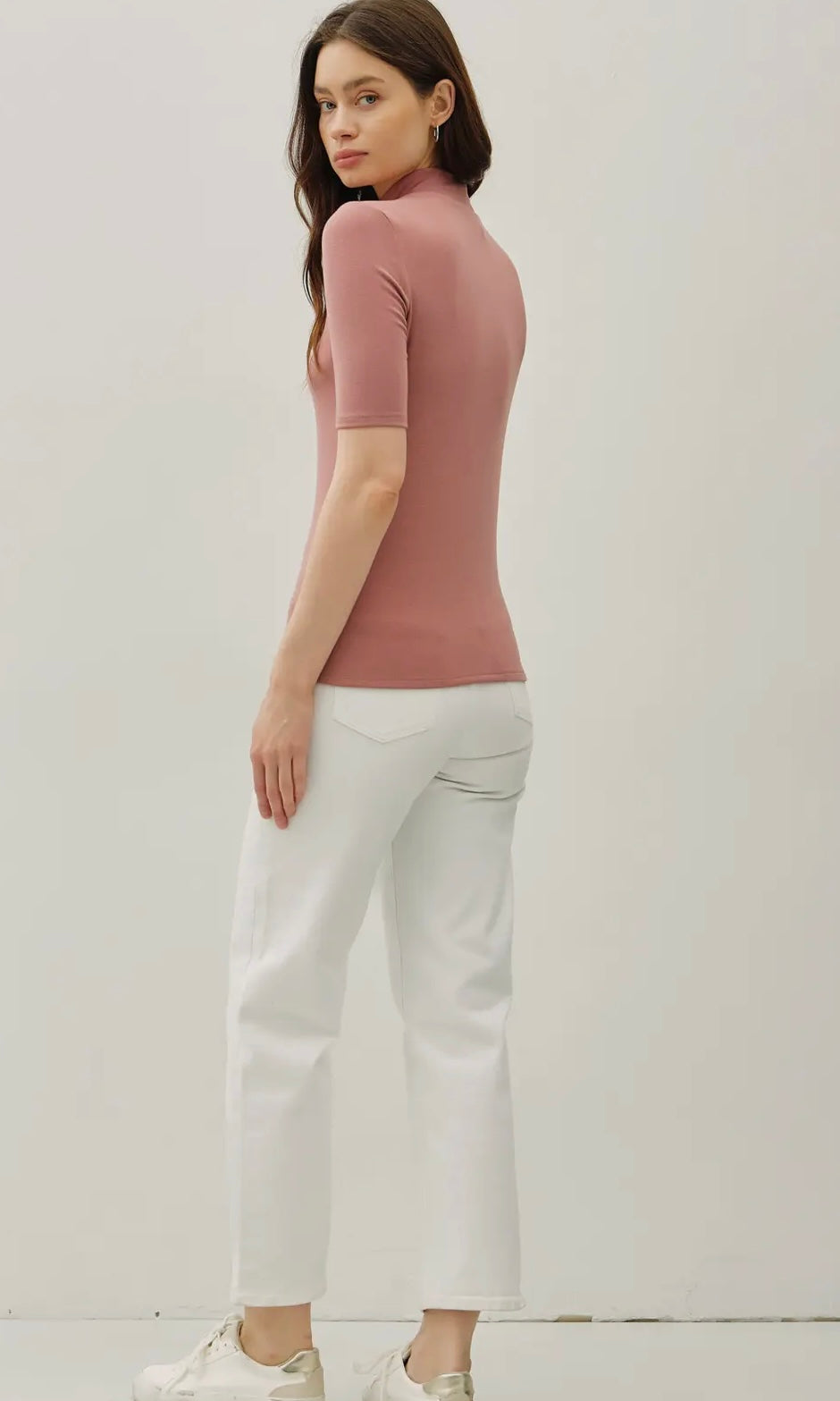 Isabella Mauve Short Sleeve Mock Neck Knit Top
