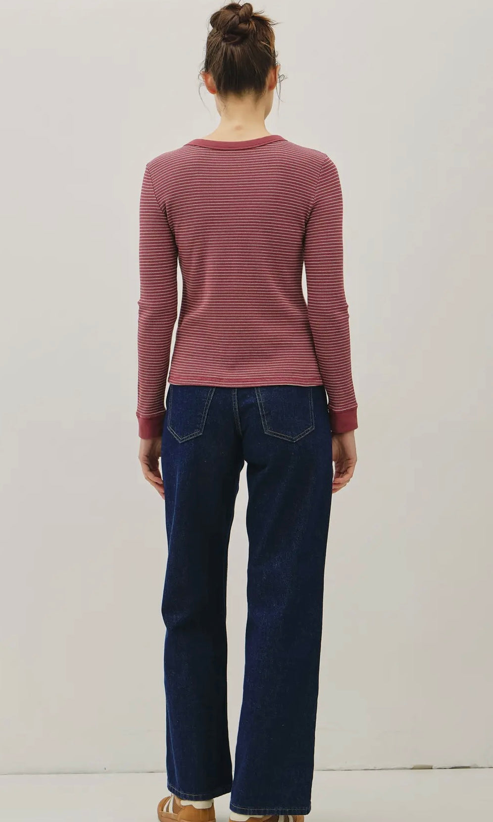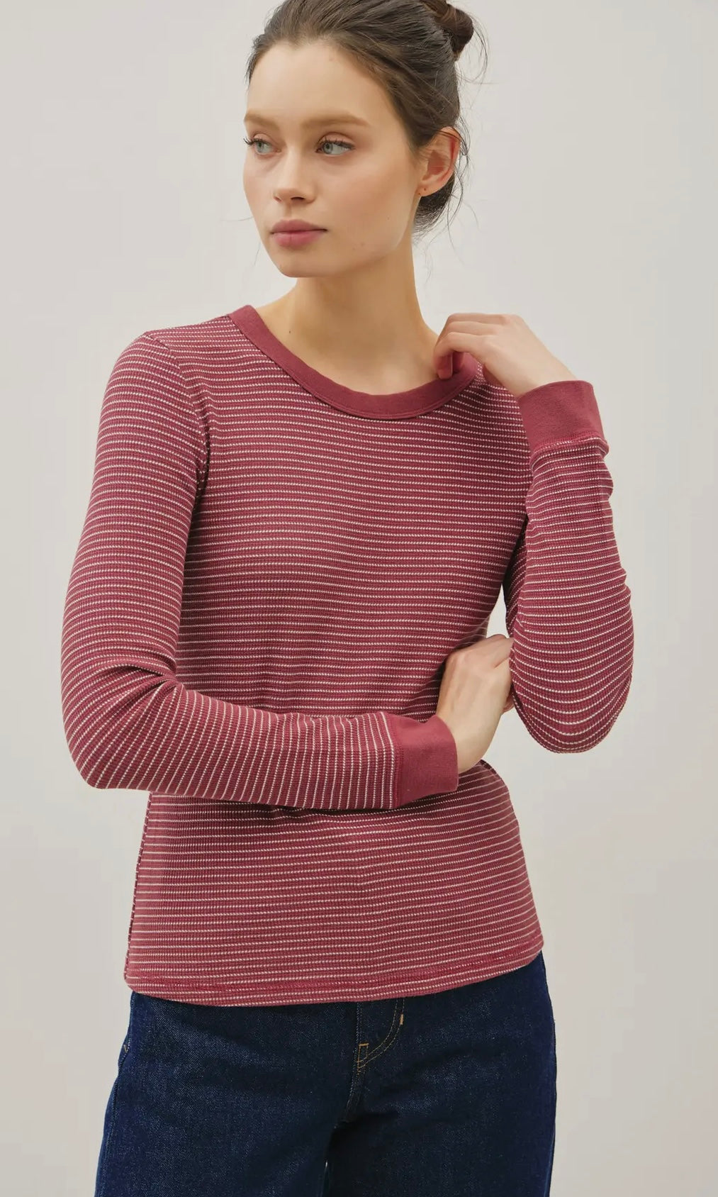 Ivan Burgundy Stitched Thermal Crew Neck Top