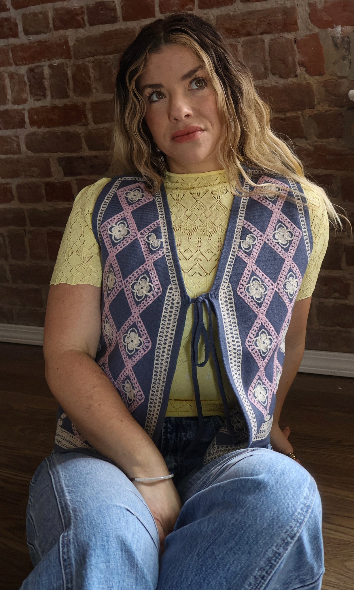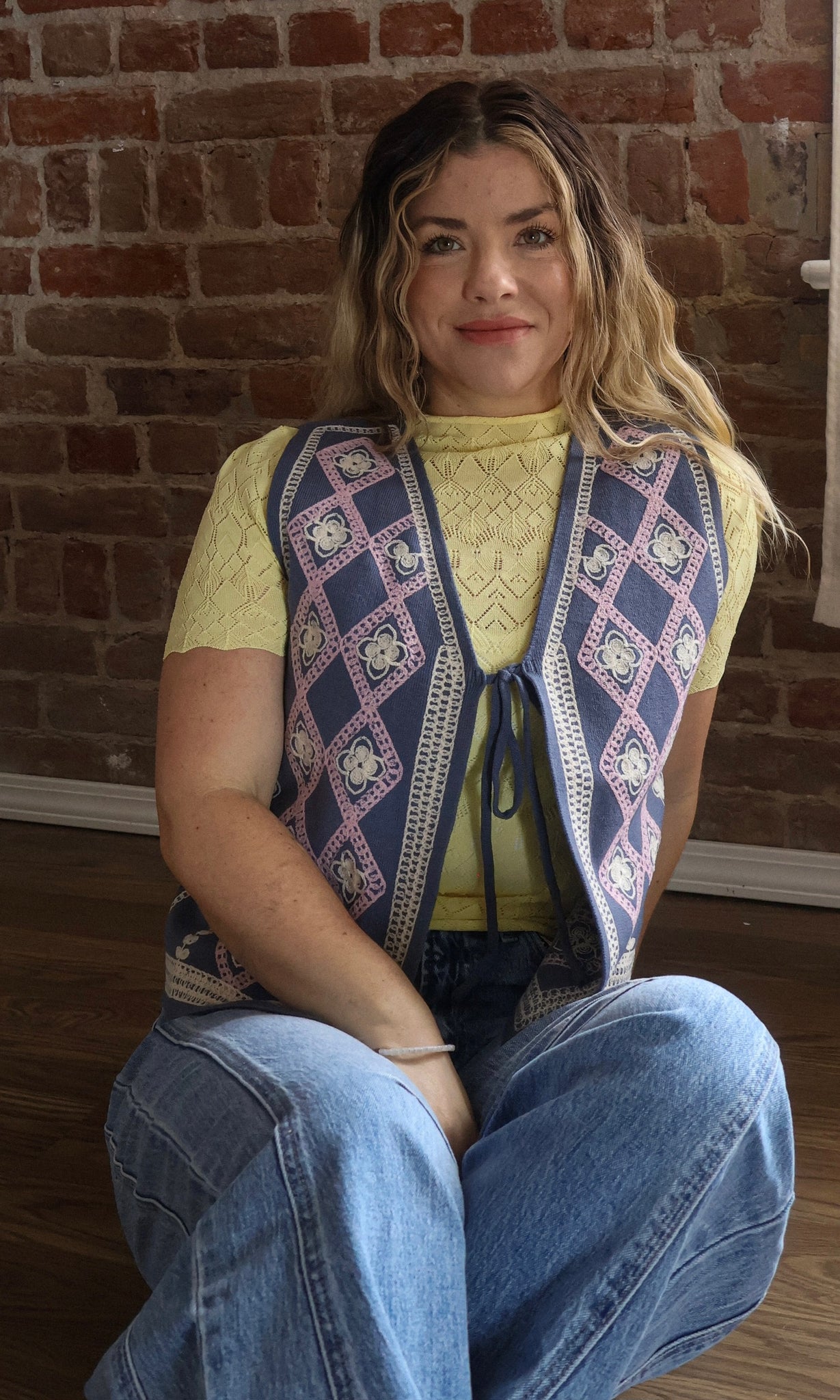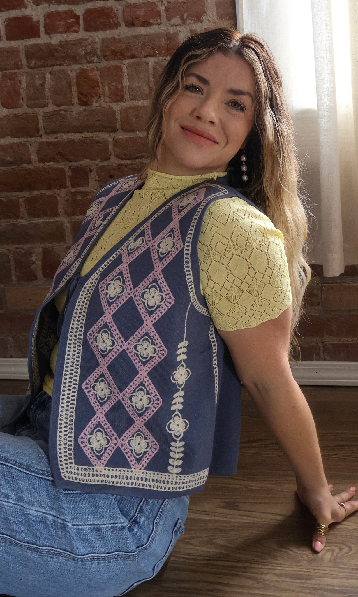Charming and effortlessly layered, this embroidered sweater vest adds a soft statement to any outfit. The intricate embroidery brings texture and personality, while the open front design makes it easy to style over tees, blouses, or dresses. Lightweight yet cozy, it’s the perfect transitional piece for adding dimension to your look.