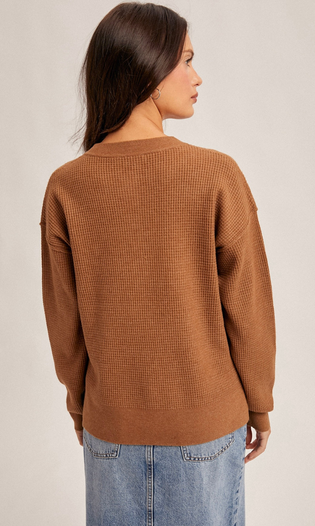 Maddy Brown Waffle Sweater Knit Top