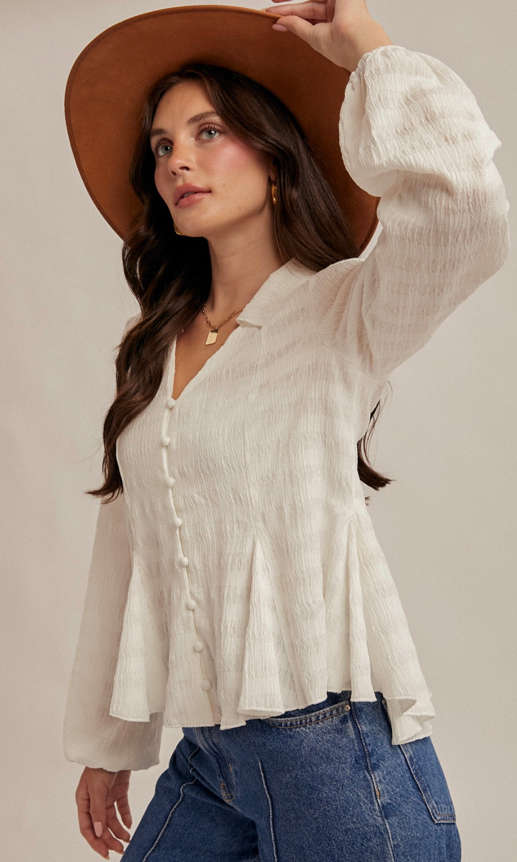 Marissa Off-White Flowy Button Down Texture Knit Blouse