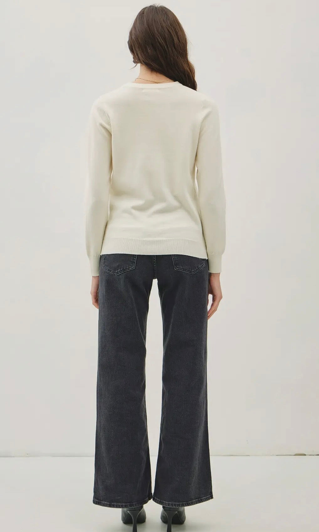Nadia Ivory Viscose Crew Neck Soft Knit Sweater