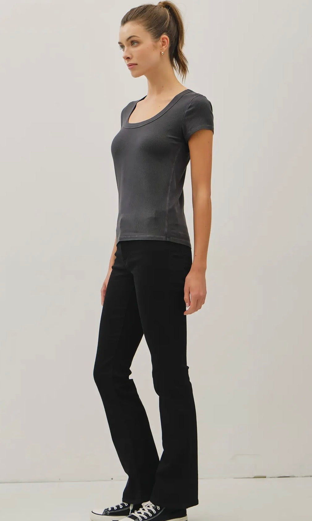 Nao Dark Charcoal Ultra Soft Basic Scoop Neck Baby Tee