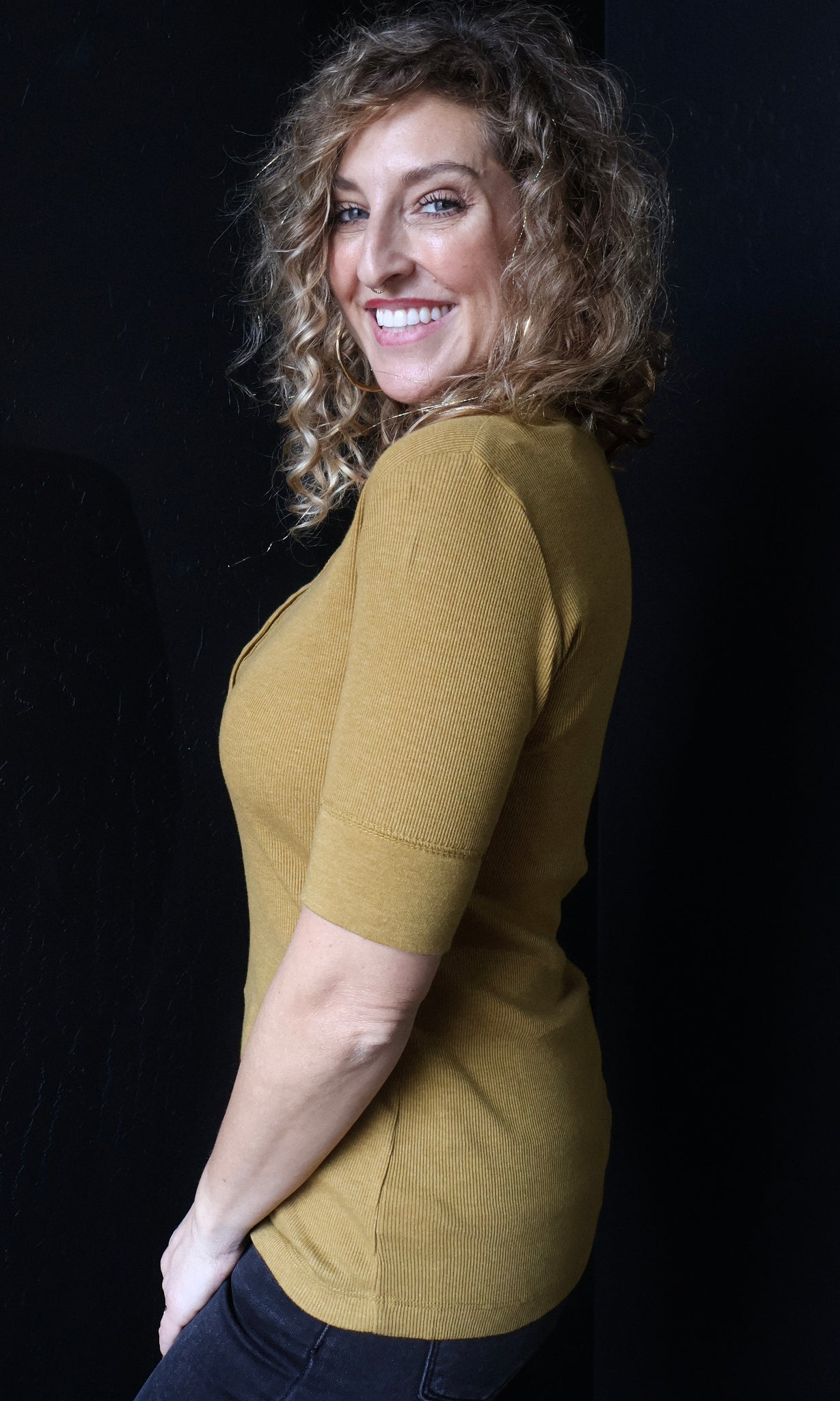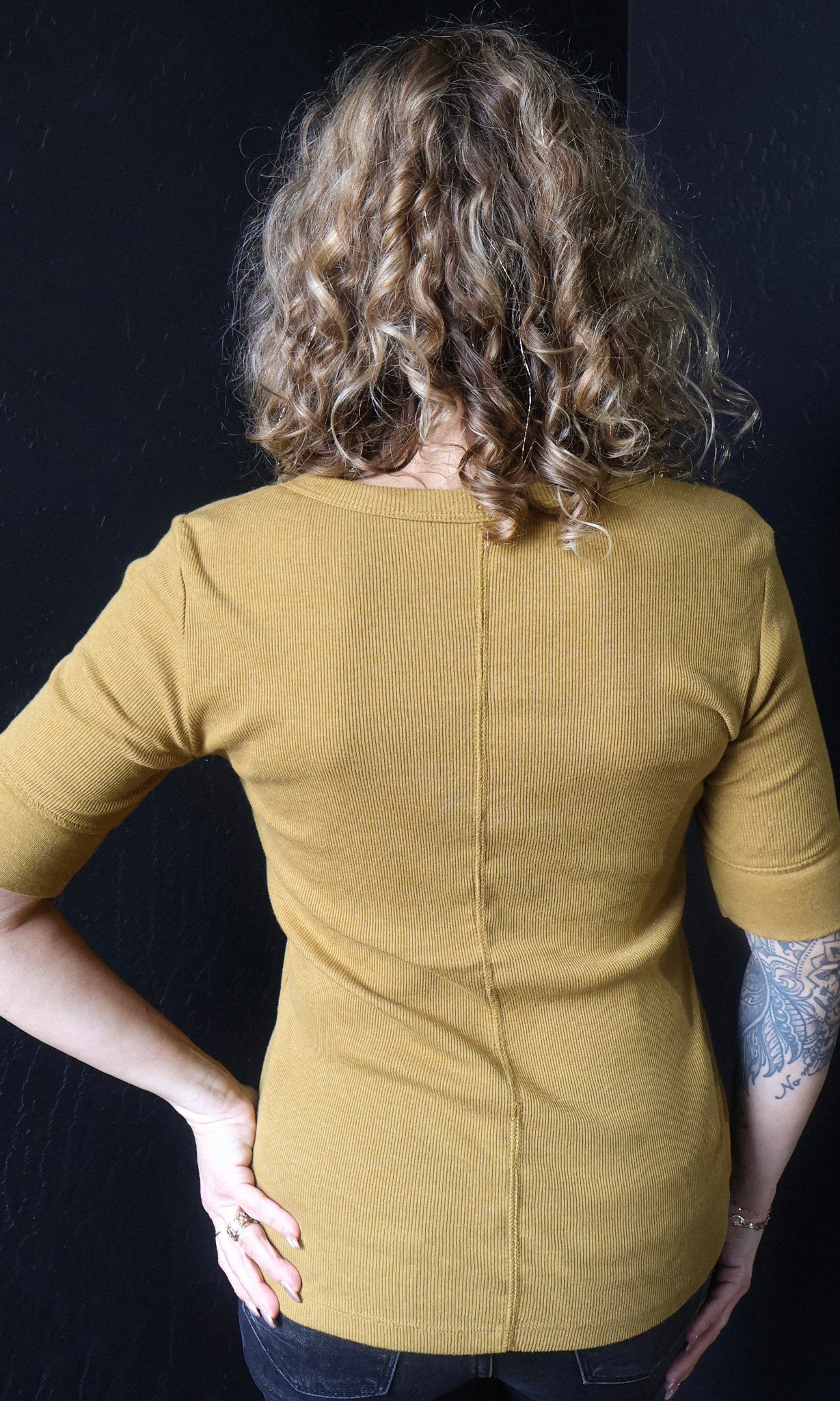 Nash Dijon Classic Ribbed Cotton Short Sleeve Henley Neck Top