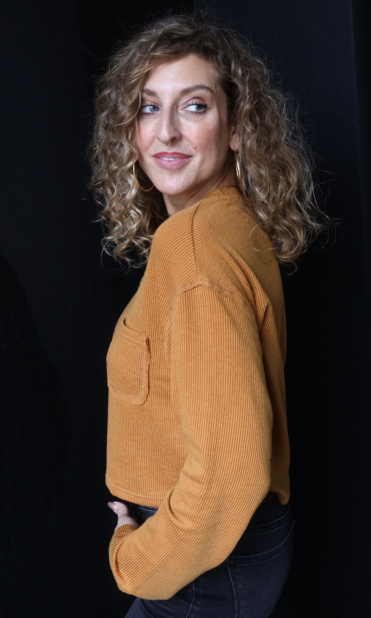 Nova Burnt Ochre Crewneck Long Sleeve Ribbed Knit Top