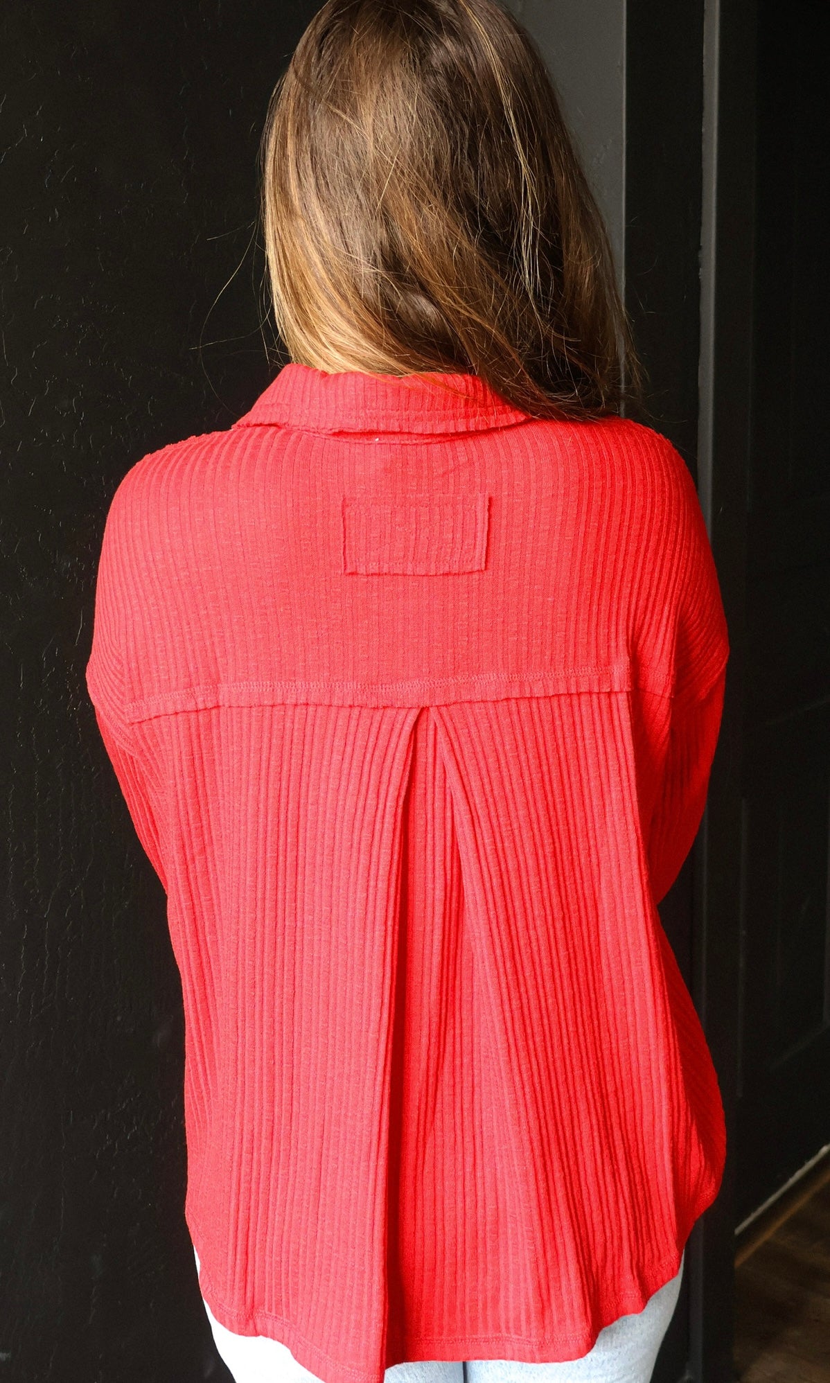Odette Cranberry Quarter Split Ribbed Polo Top