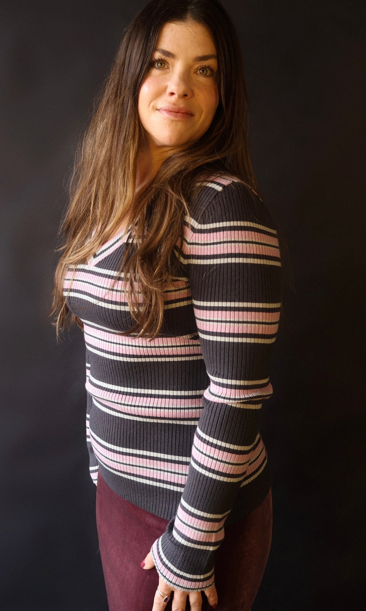 Parker V Neck Rib Stripe Sweater Top