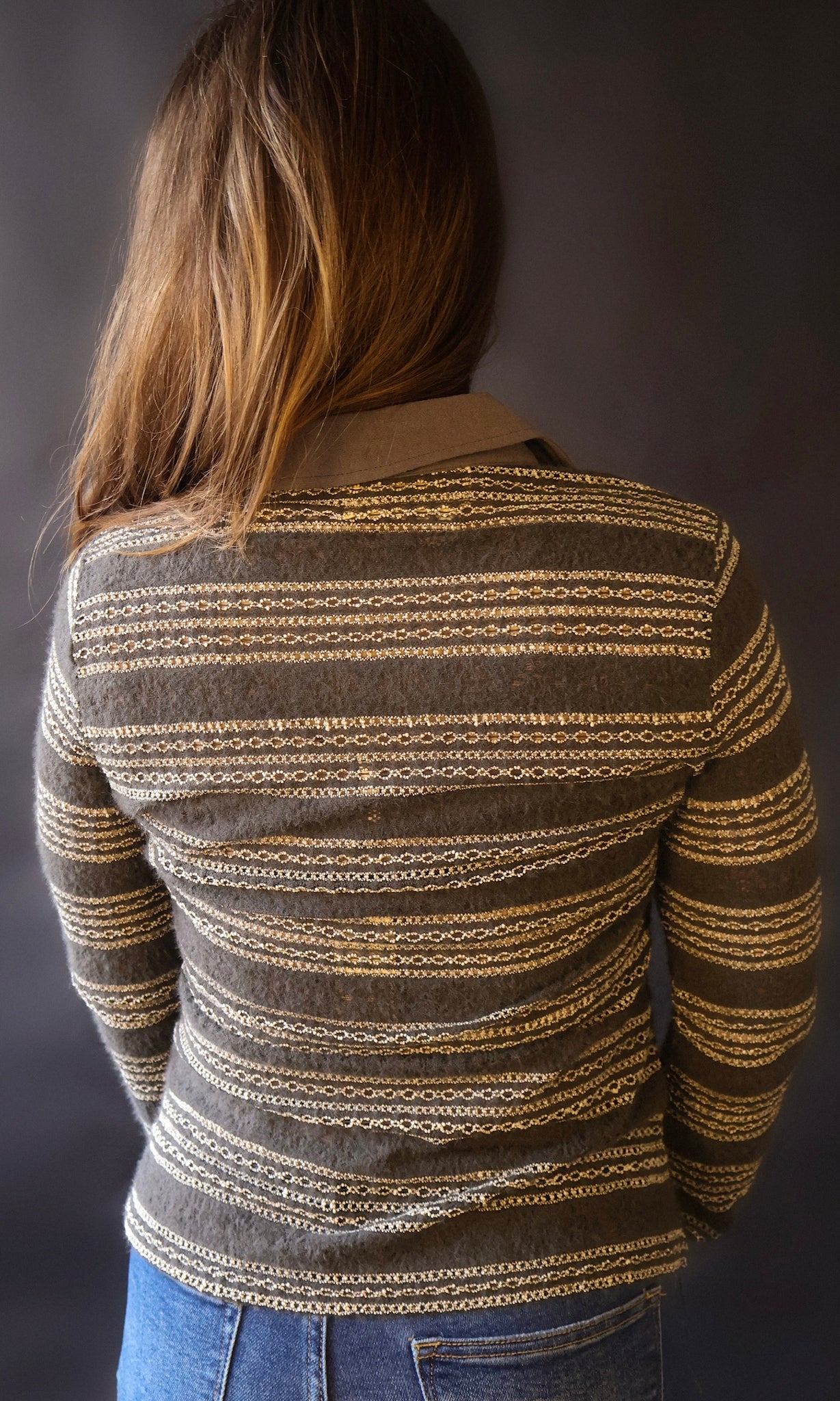 Brushed two tone lace button down shirt