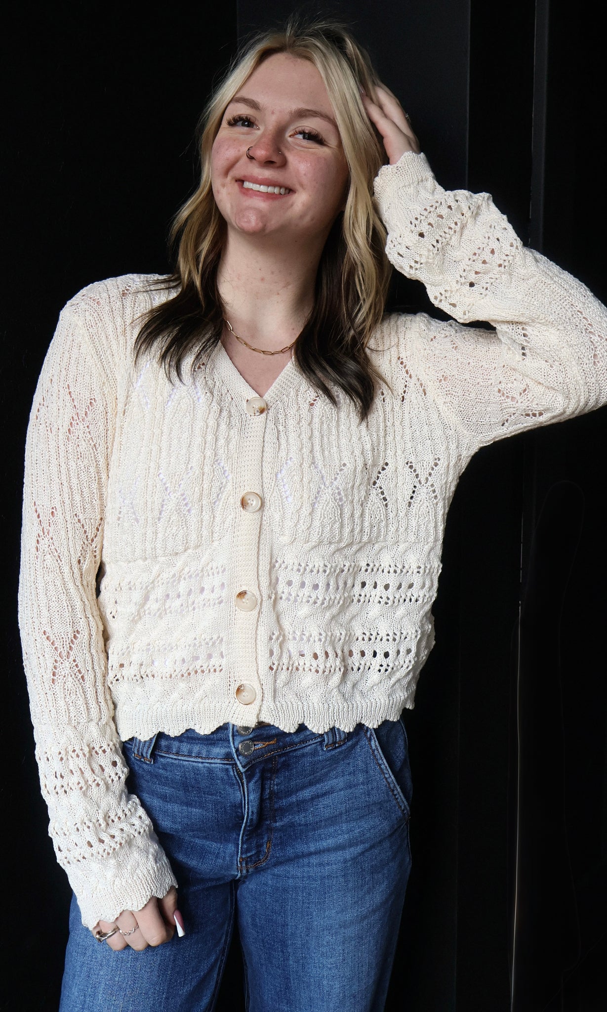 Quennel Lacey Open Knit Button Front Cardigan Sweater