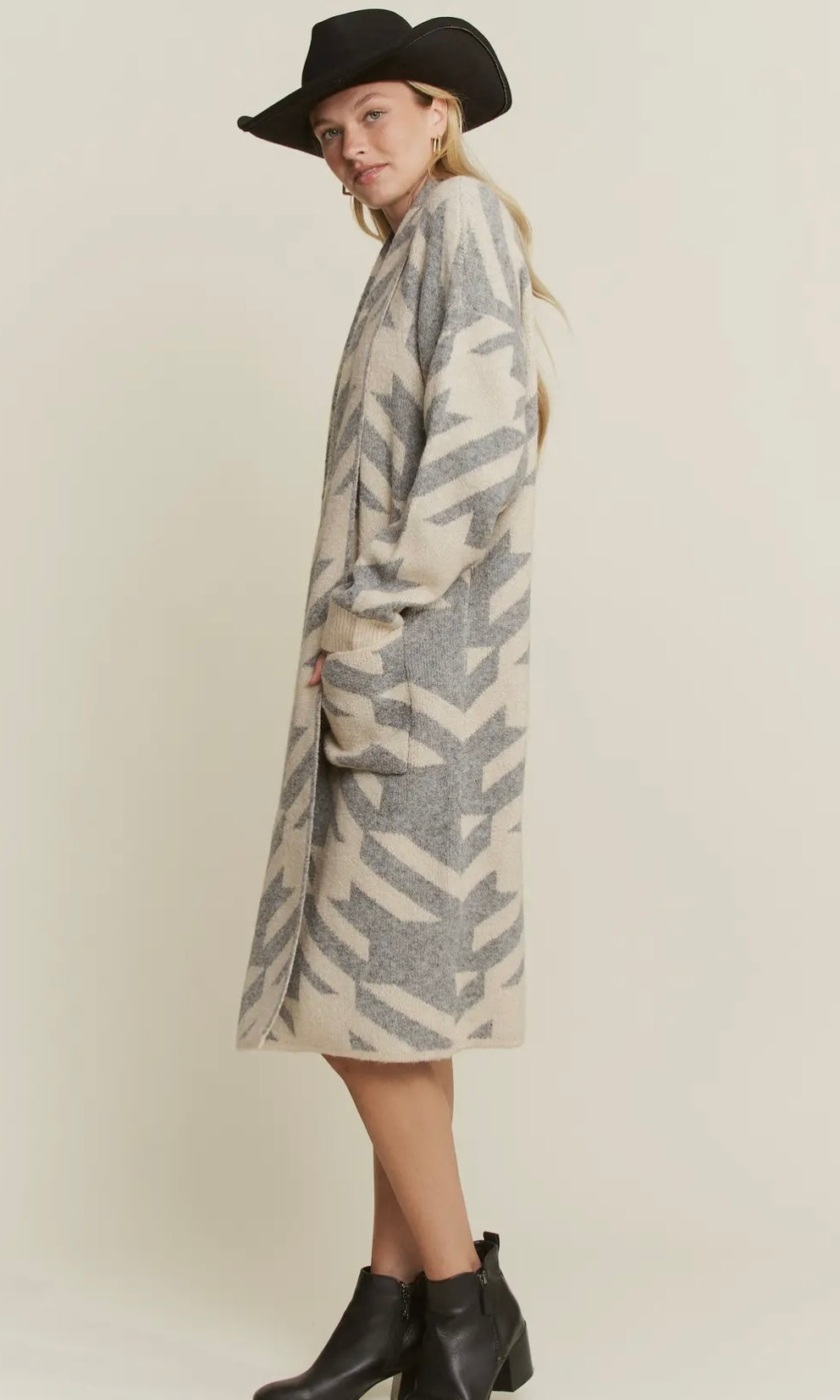 Ruthie Giant Houndstooth Print Cardigan