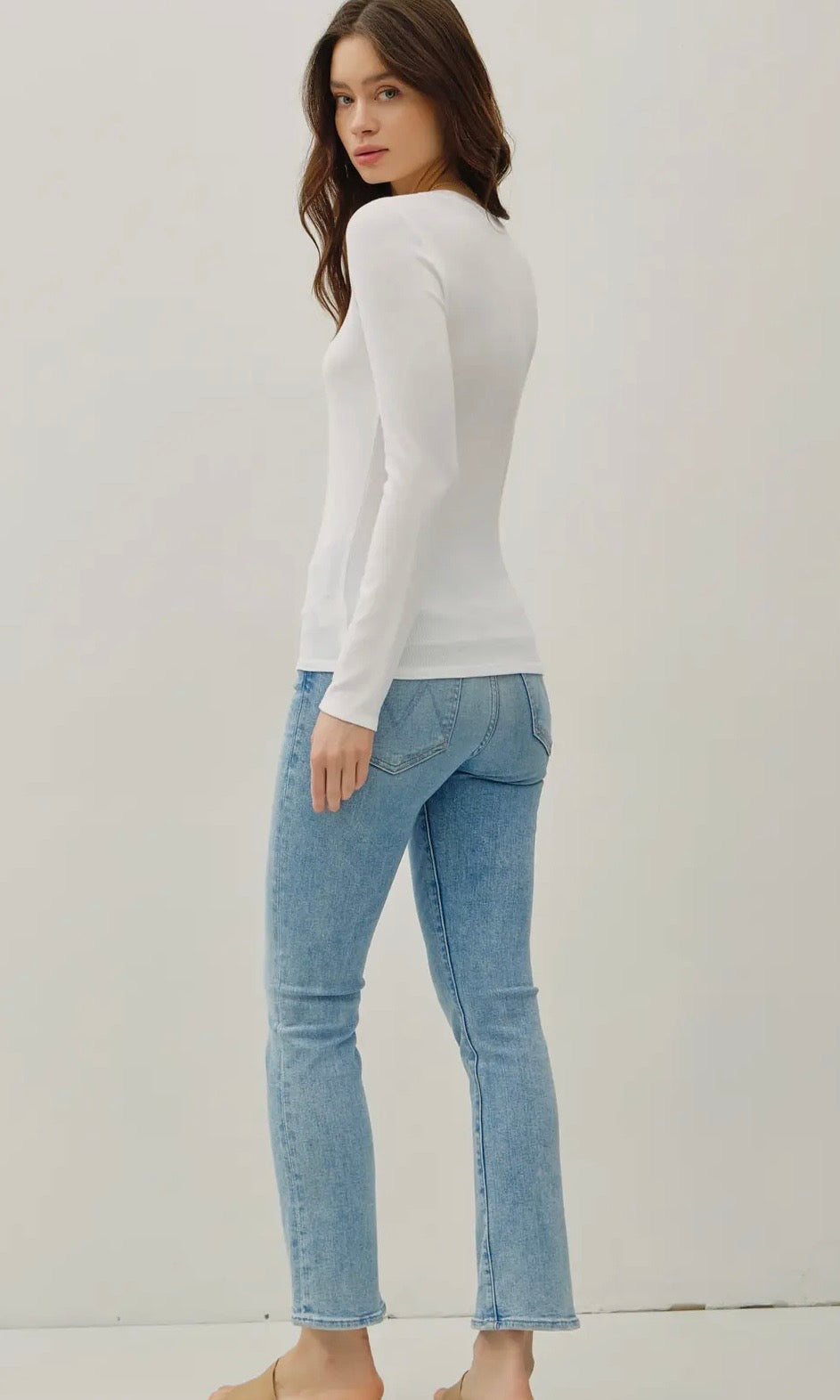 Isaac Off White Modal Classic Ribbed U Neck Long Sleeve Basic Top