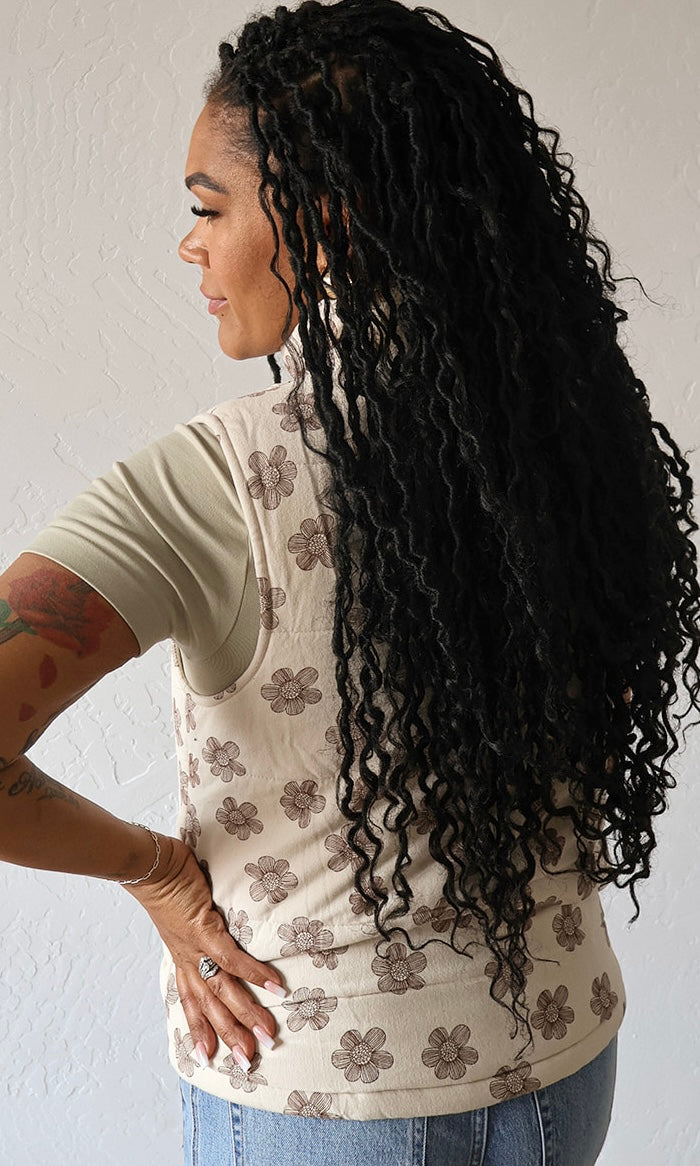 Maxine Ecru Floral Brushed Padding Vest