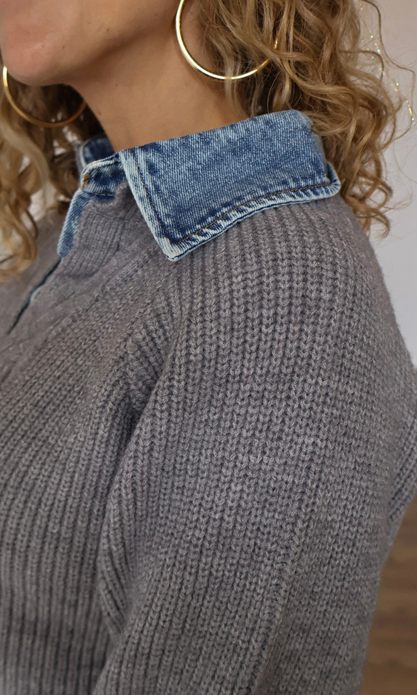 Denim Contrast Sweater